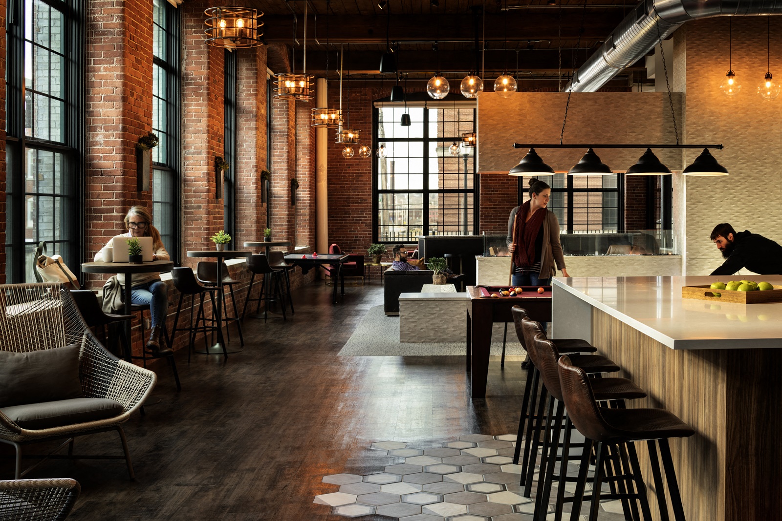Rich Industrial Style Unites Jewel Colours With Exposed Brick Walls